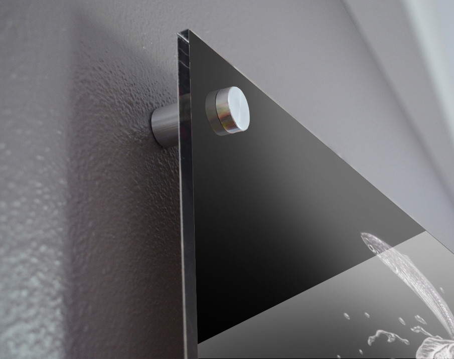Impression sur acrylique avec entretoises ( cylindres métalliques )