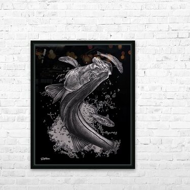 Silver Snook is a new original pencil drawing and painting on board. For the best reproduction print, we suggest ordering this is canvas - silver option at checkout or on HD metal.