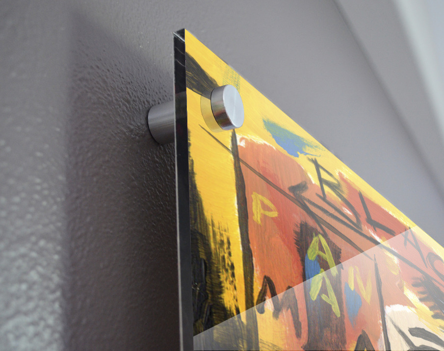 Impression sur acrylique avec entretoises ( cylindres métalliques )
