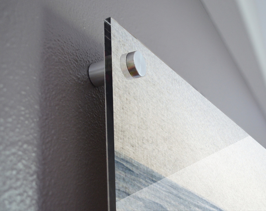 Impression sur acrylique avec entretoises ( cylindres métalliques )